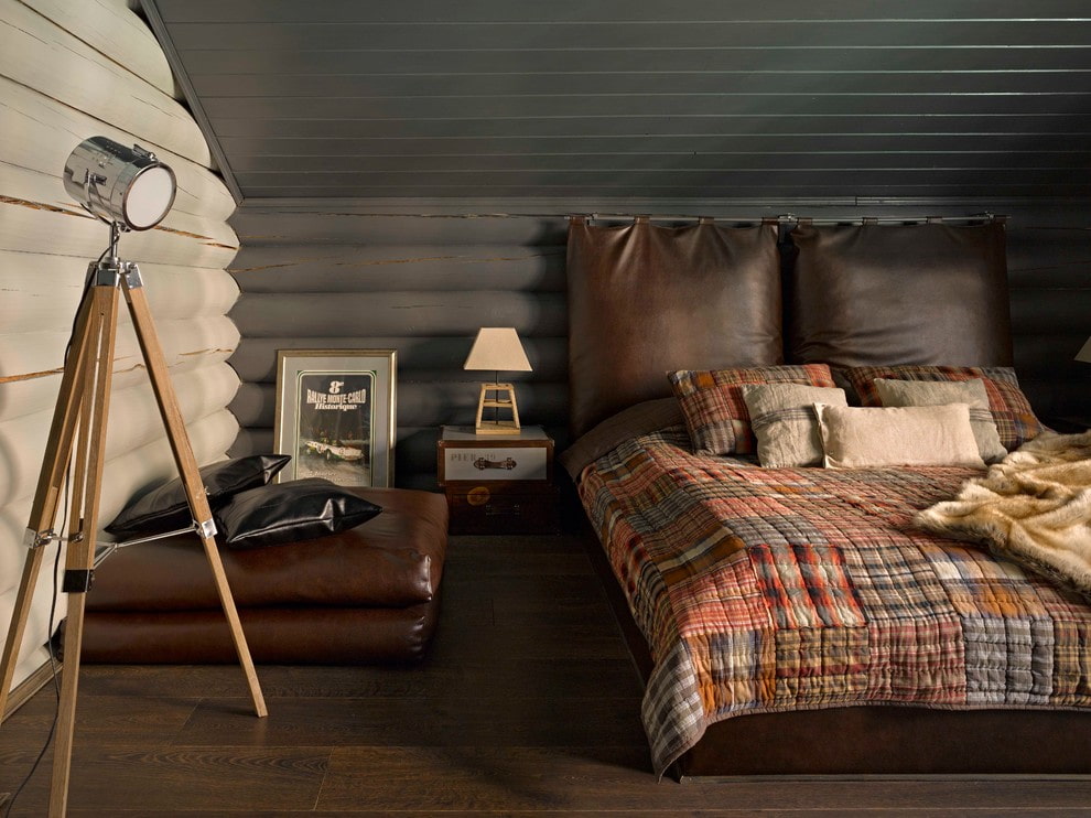 In the photo there is a chalet with a leather furniture set. The cushions instead of the backrest fit perfectly into the interior.