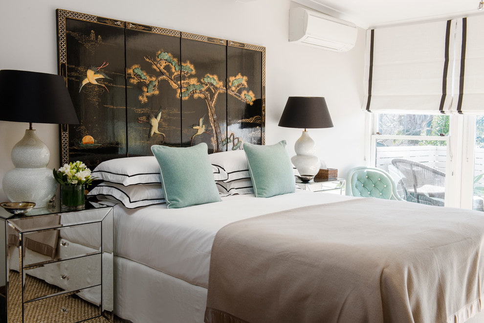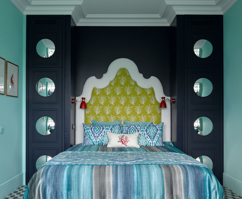 A three-dimensional drawing on furniture is a kind and at the same time unobtrusive way to decorate the headboard.