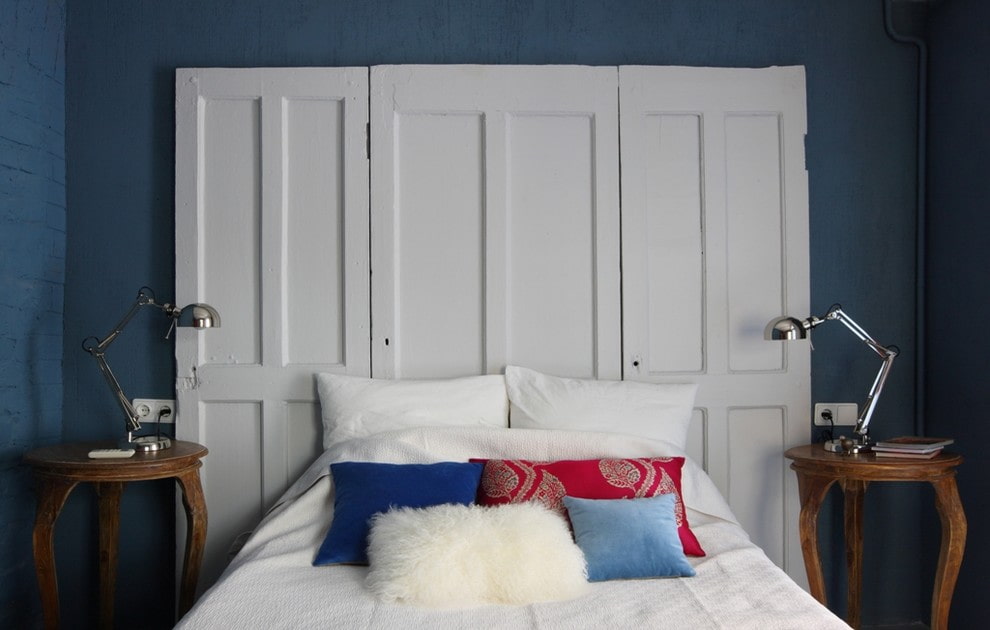 The imagination of designers has no boundaries. As a matter of fact, any decorative material can serve as a headboard, if applied correctly. For example, a headboard for a bed can be made from hanging leather pillows. The construction of bamboo attached to the wall will add a touch of oriental flavor to the interior. You can also neatly fit solid pine boards over the berth.