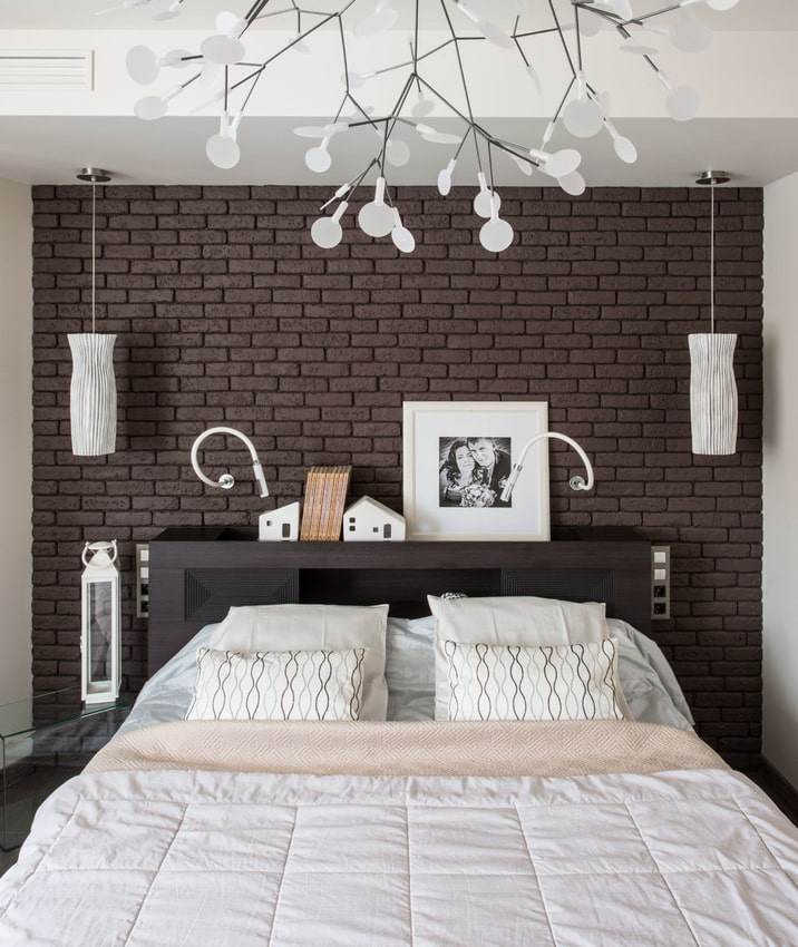- Whencontrasting In the variant, the headboard is clearly opposed to the wall and emphasizes its size and shape.