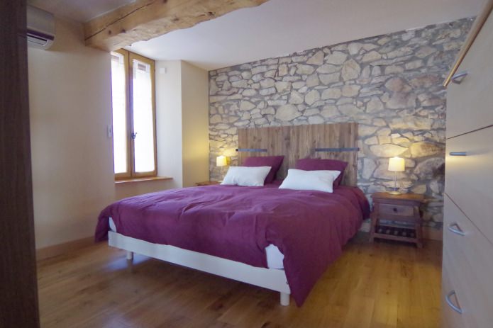 The use of decorative stone in the interior of the bedroom