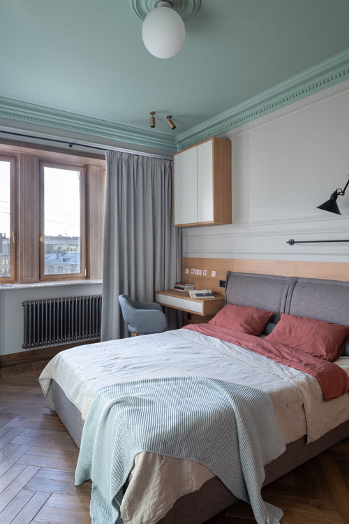 There are practically no restrictions on the use of finishing materials in the design of a 15 sq. M bedroom - there is no high humidity or temperature. Choose quality coatings that do not emit harmful substances and will last for many years.