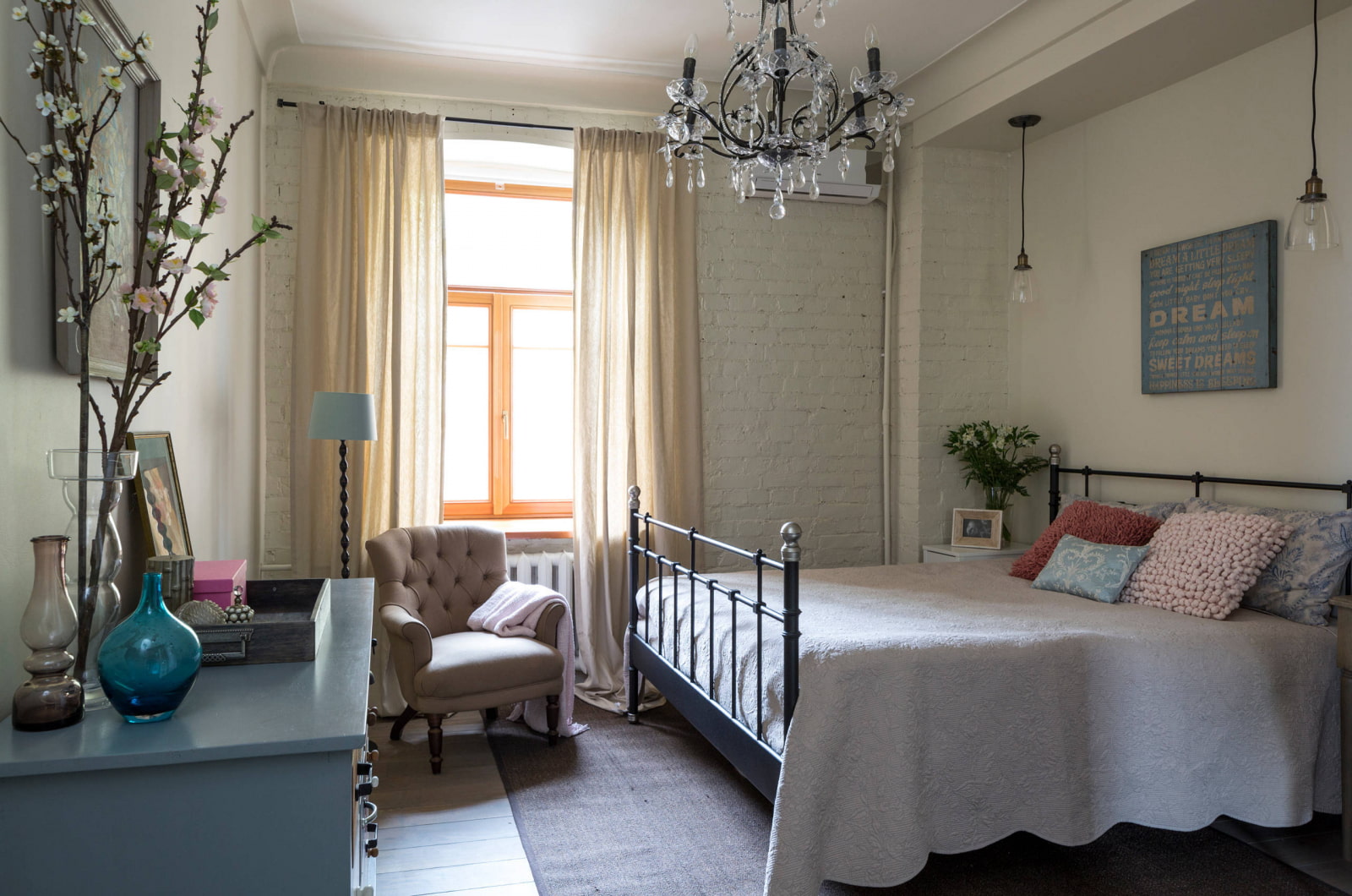 The minimalism style is suitable for those who value cleanliness and conciseness. Light finishes, a minimum of furniture and decor will provide a sense of spaciousness. The Scandinavian style is a more comfortable kind of minimalism: the bedroom is equipped with wood furniture, handicrafts, textiles made from natural fabrics.