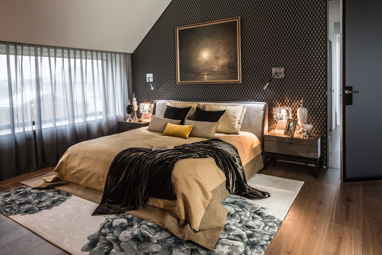 In large bedrooms in a private house, if desired, use dark shades - graphite, chocolate, coffee.