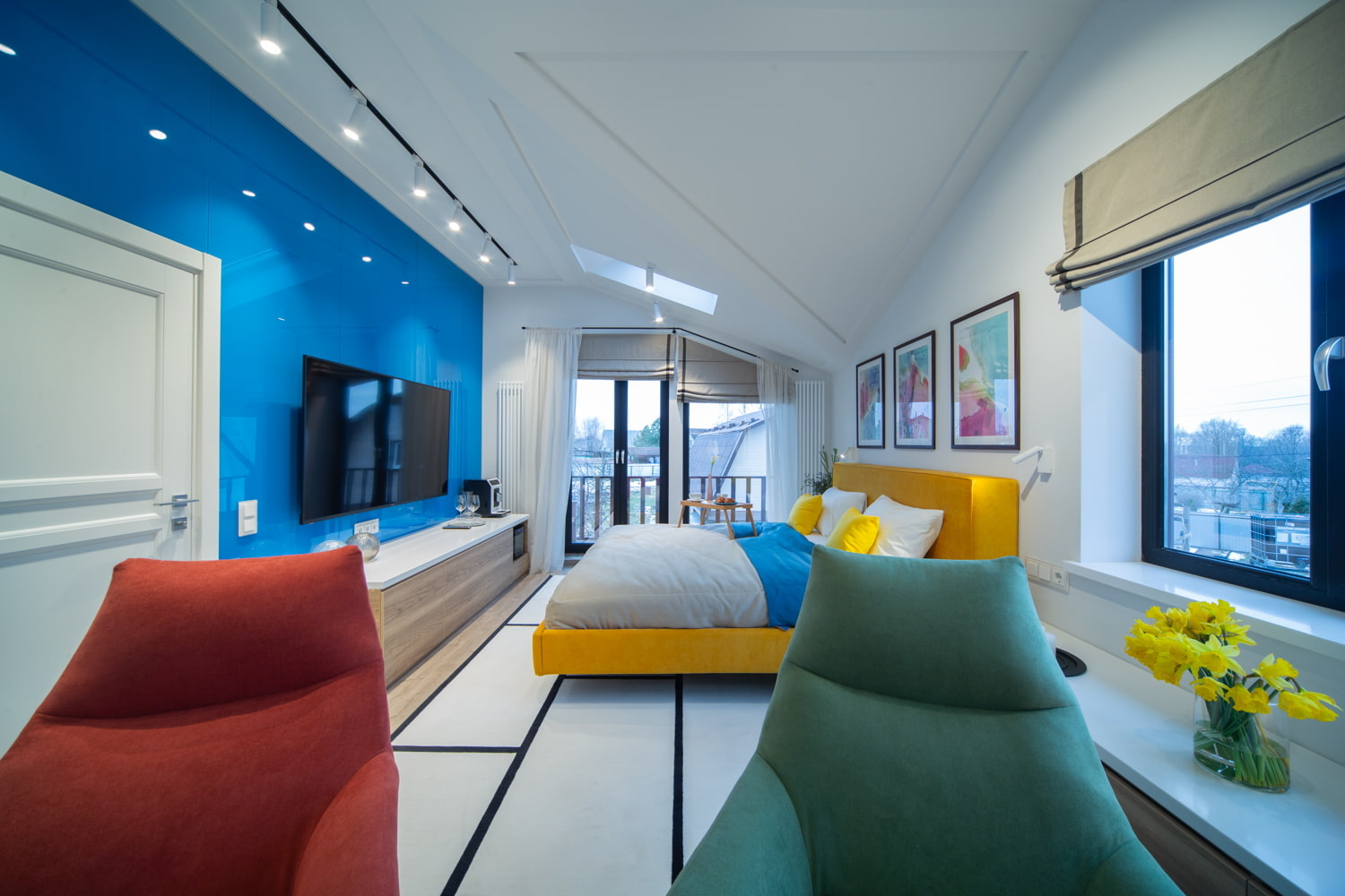 Whichever color scheme you choose, remember: it should be comfortable. Too bright colors prevent your eyes and brain from resting, which means you run the risk of developing chronic fatigue syndrome.