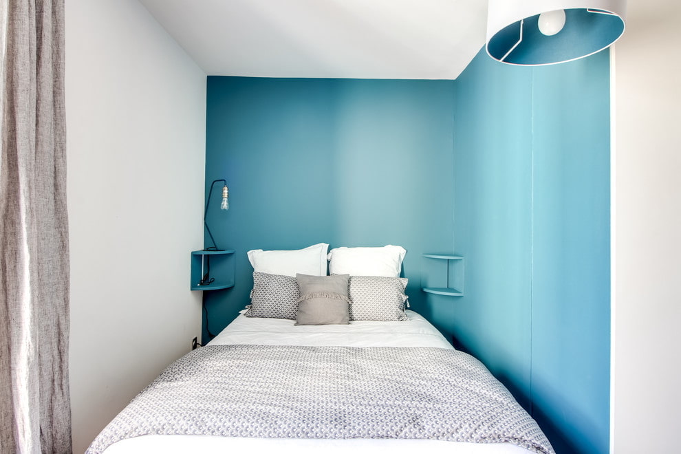 - Blue is ideal for a small bedroom, as due to the visual distance of surfaces, it helps to expand the space.