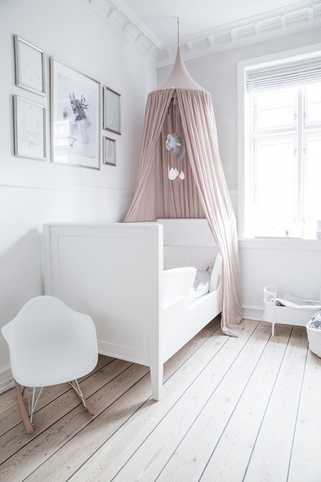 The canopy is a very functional element of the newborn crib. It creates a cozy space for the baby, diffuses bright light and gets rid of dust and insects. If the crib is by the window, the thick fabric protects the baby from drafts. And, of course, the canopy in the nursery looks very attractive.