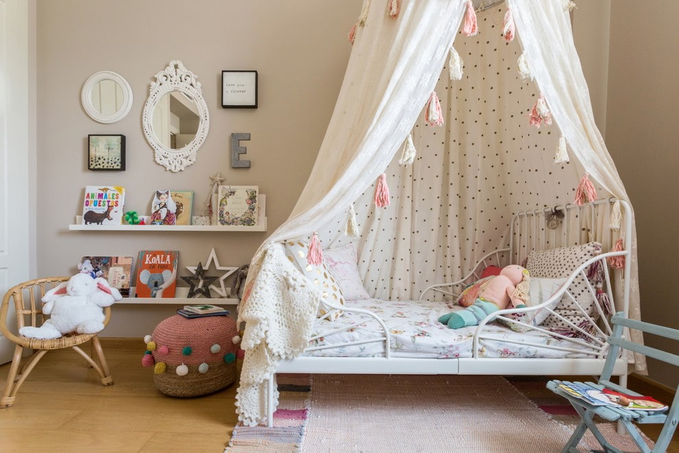 A girl over two years old will appreciate the original carriage bed or car bed with a canopy. Here, its role as a decor is irreplaceable. Boys will prefer a cottage bed or a loft bed. In all these cases, the canopy serves as an additional element for games.