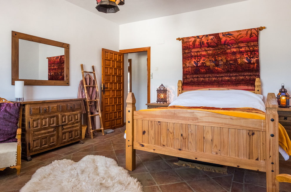 French Provence assumes natural and high-quality materials, so a wooden bed is perfect for such an interior ensemble. Models with patina made from solid birch, ash or other light species, products complemented by floral patterns or carvings will be appropriate here.