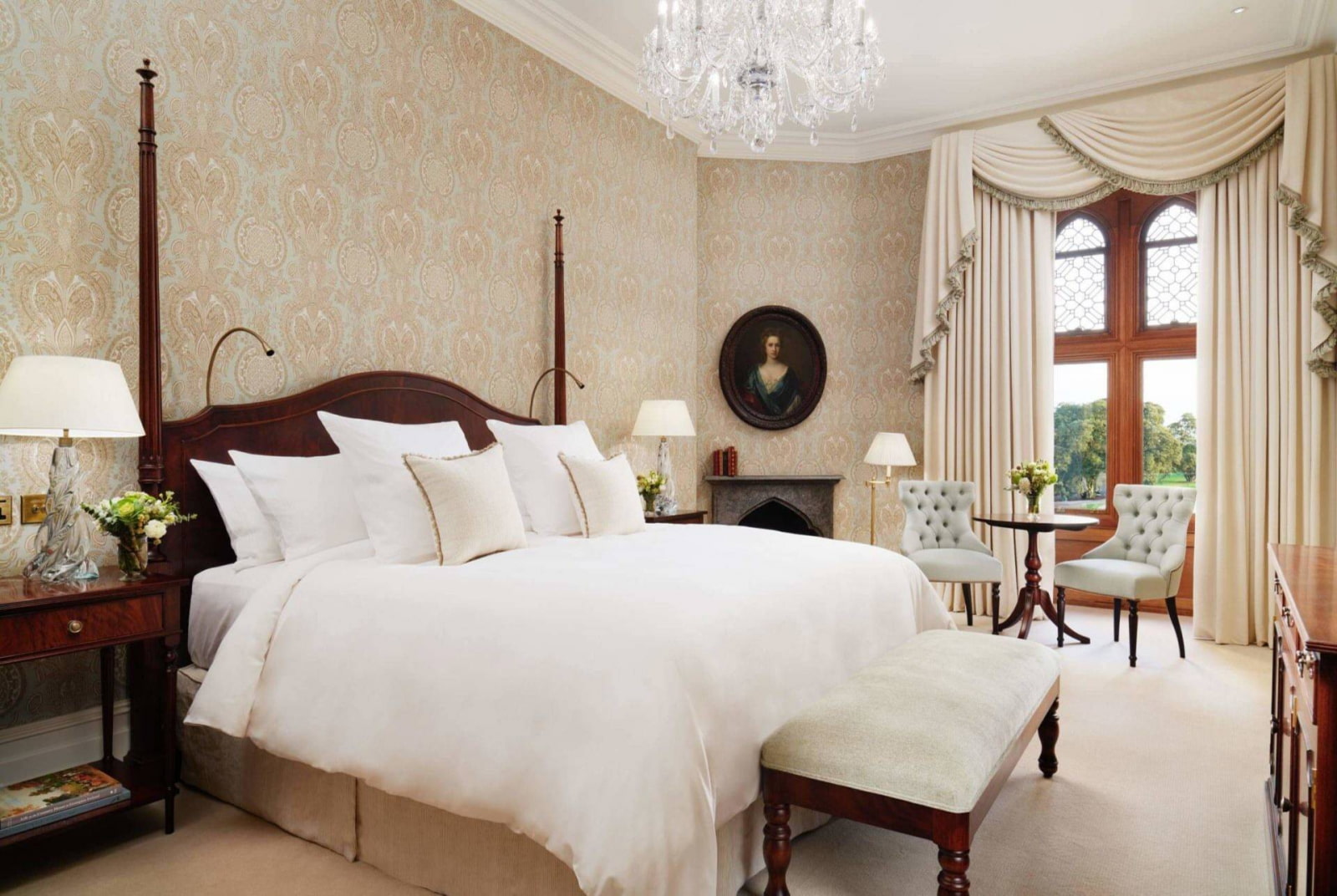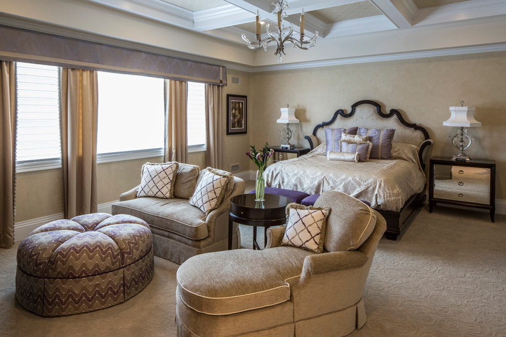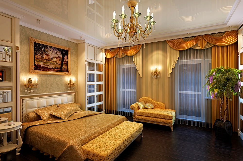 A majestic style also means soft and flowing lines. Designs should be simple and overlap with finishes and décor. Gold hues fill the room with precious shine and make it even more presentable.