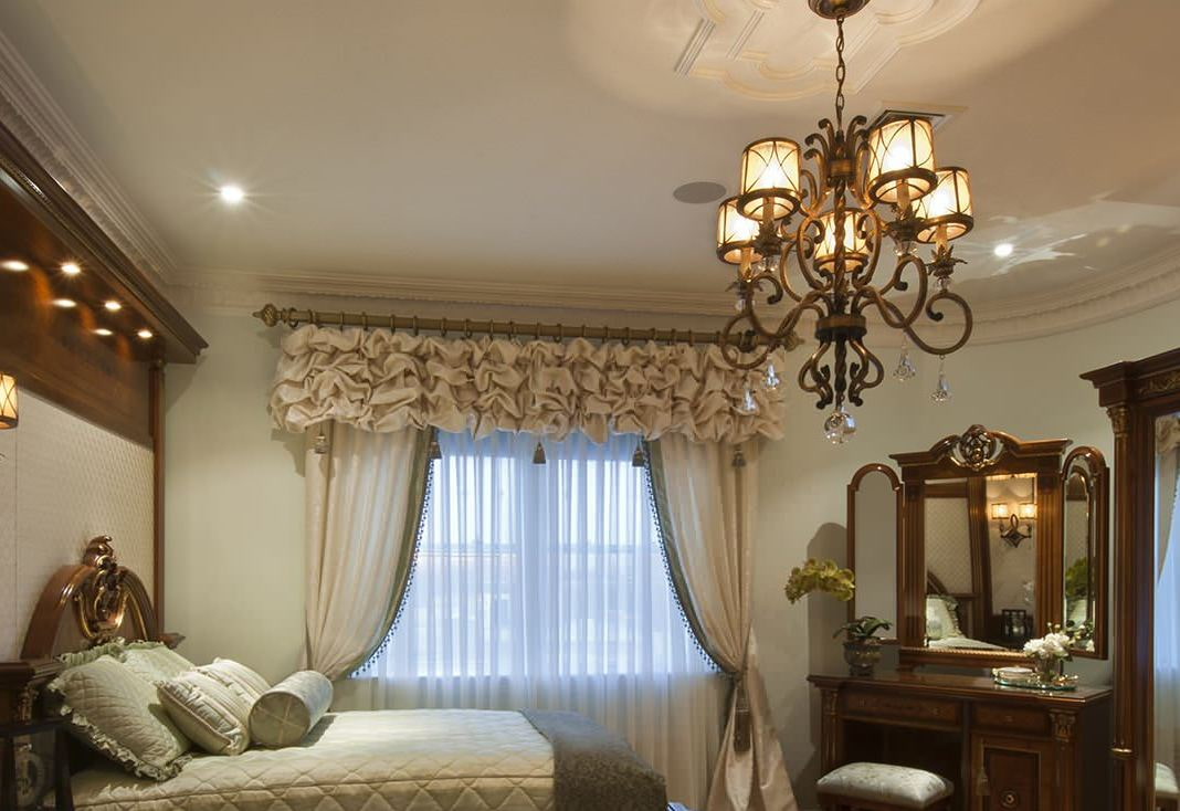 Length, shape, as well as decorations for lambrequins, are selected in accordance with the general style of the bedroom.