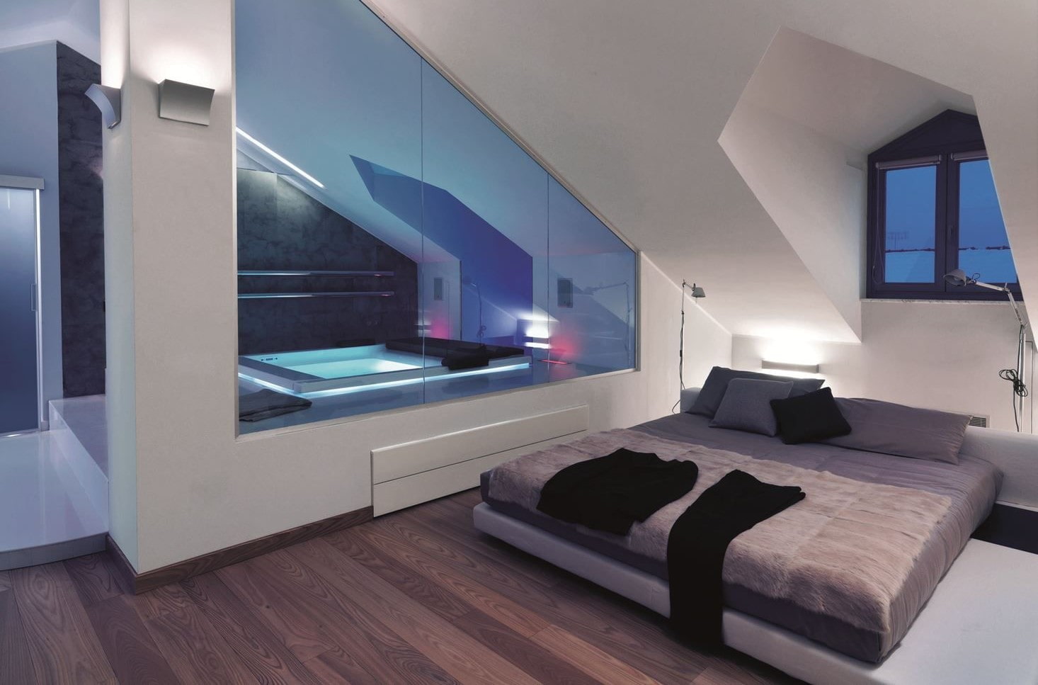 In the attic bedroom, it is possible to install a bathroom, shower or equip a bathroom. In such a case, you should take care of purchasing a hood with a strong power to protect the attic from temperature extremes and high levels of humidity.
