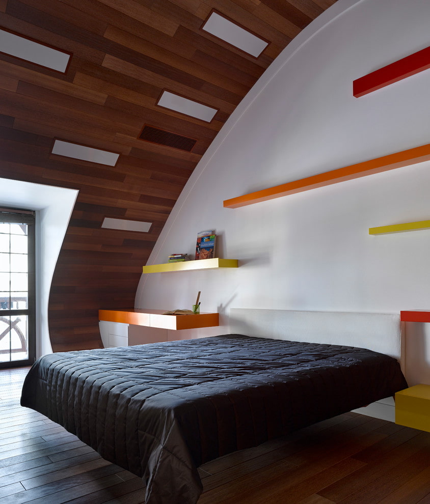 The floating bed will highlight the dignity of any design trend from classic to eclecticism. Original furniture is suitable for apartments and houses with non-standard layouts. For rooms with open space zoning, it is better to choose bedroom sets in the same style as the rest of the furniture. When choosing furniture for a children's room, you should pay attention to the safety of materials and the reliability of assembly and fastening.
