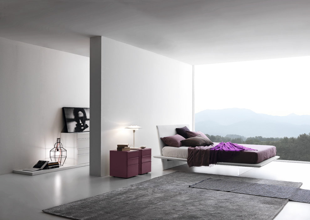 Bedside tables and bedside tables have become an invariable attribute of a comfortable bedroom. Next to the floating bed, bedside furniture hanging on the wall will organically look to enhance the illusion of levitation in the interior.