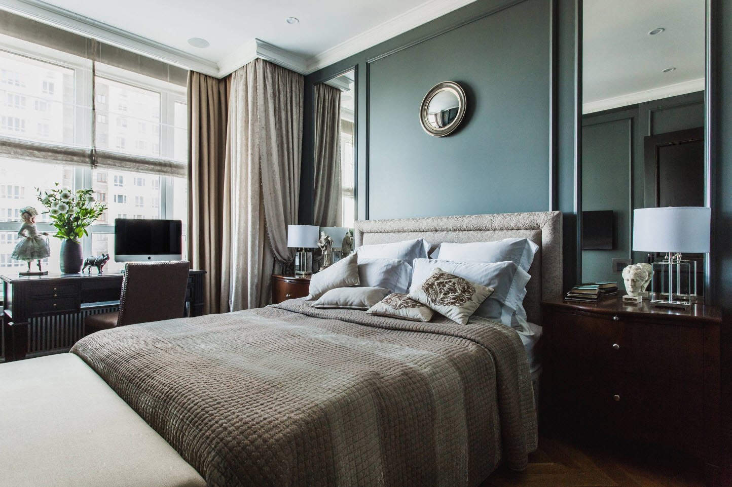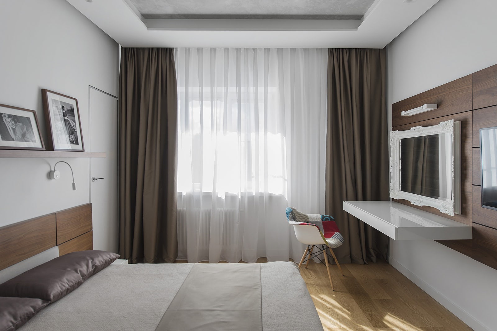 - Do not place the bed with the headboard towards the window, opposite the door. This will affect sleep comfort. In the first case, you will be disturbed by noise, cold air, in the second - by light from neighboring rooms.