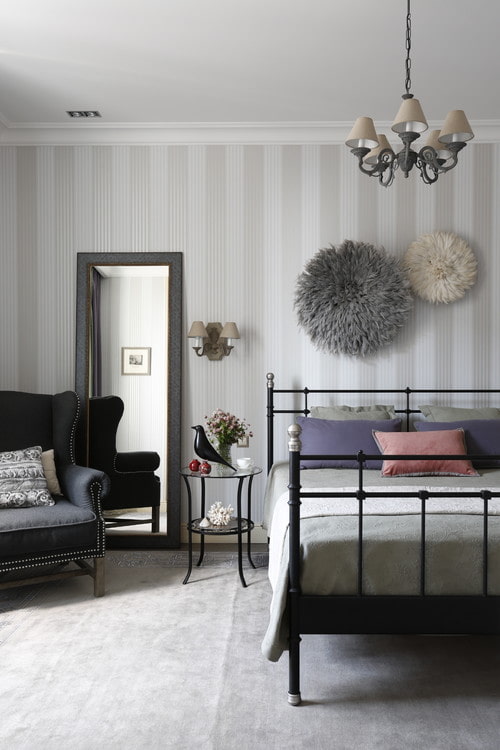 - Place the bed headboard against the wall, make a high headboard. This is due not only to the rational use of space, but psychological calmness.