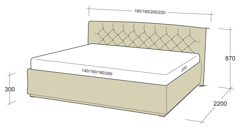 In addition to standard dimensions, custom-made non-standard beds are also produced. In particular, by increasing the width and length or changing the shape - semicircular, round, square, oval. In this case, mattresses are made to order.