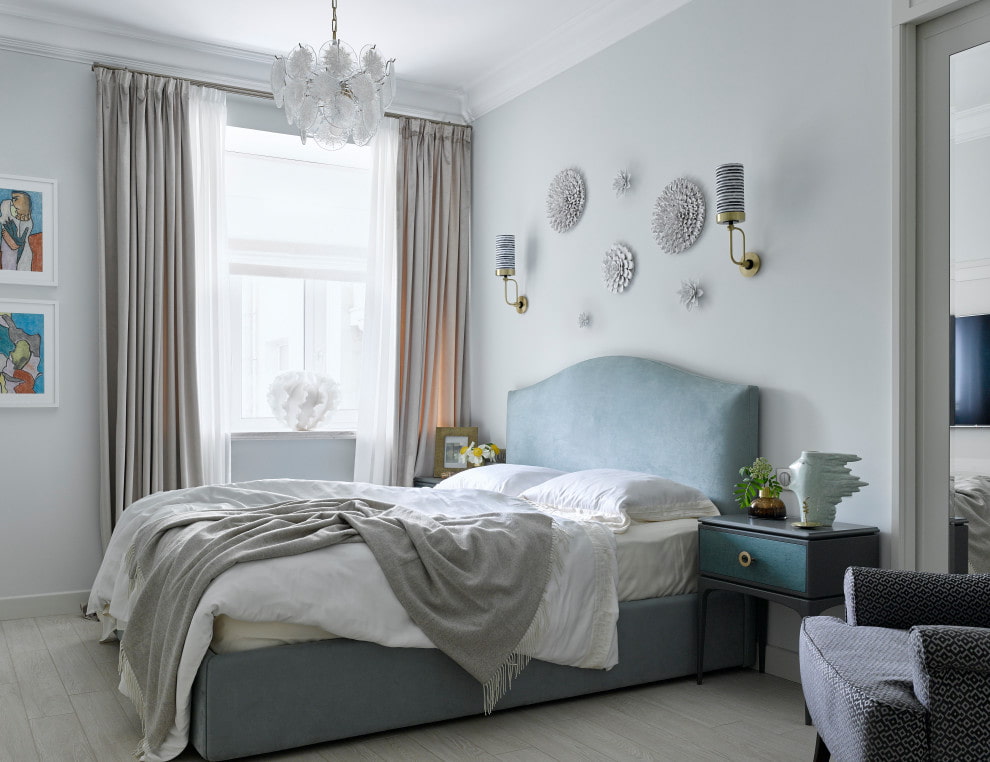 If the bedroom lacks lightness, in addition to light colors in the decoration, use "airy" decorations: flying fabrics, transparent vases, voluminous paper garlands ...
