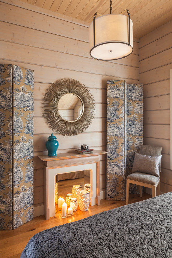 An open fire gives warmth, twilight and a special state of mind. Candles with a pleasant aroma will add mystery and magical notes to the bedroom, and the installed fireplace will provide warmth and comfort.