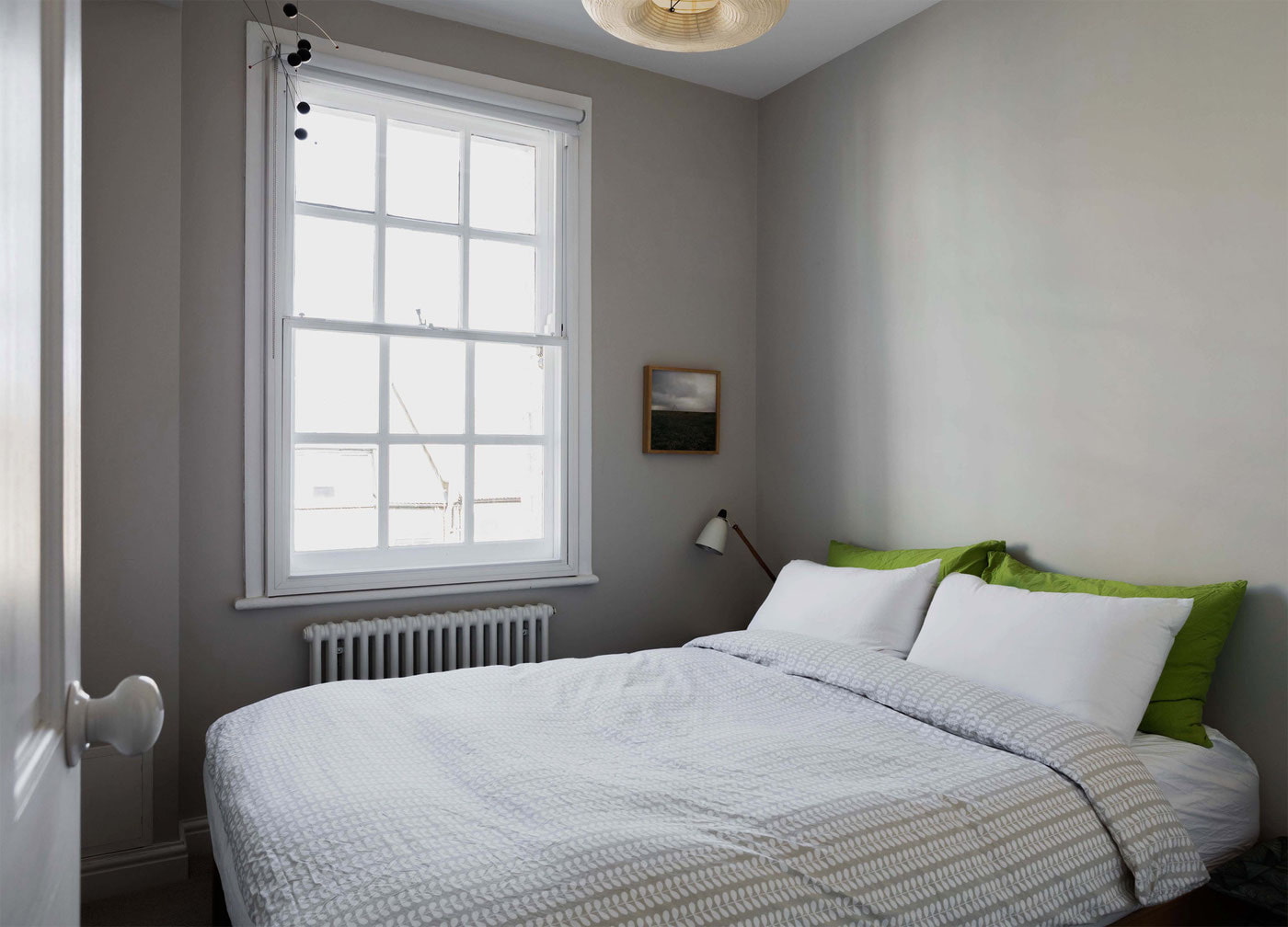 - Headboard to the window. When the window is on the long side, the bed is also placed in a niche (sideways to the short wall), and half of the headboard is at the window. Advantage: the window sill will partially replace the bedside table. With a headboard, you can put a bed against the window on a short wall in the interior, but then there will be somewhere half a meter to the side for approach and at the legs - a narrow pencil case is placed there.