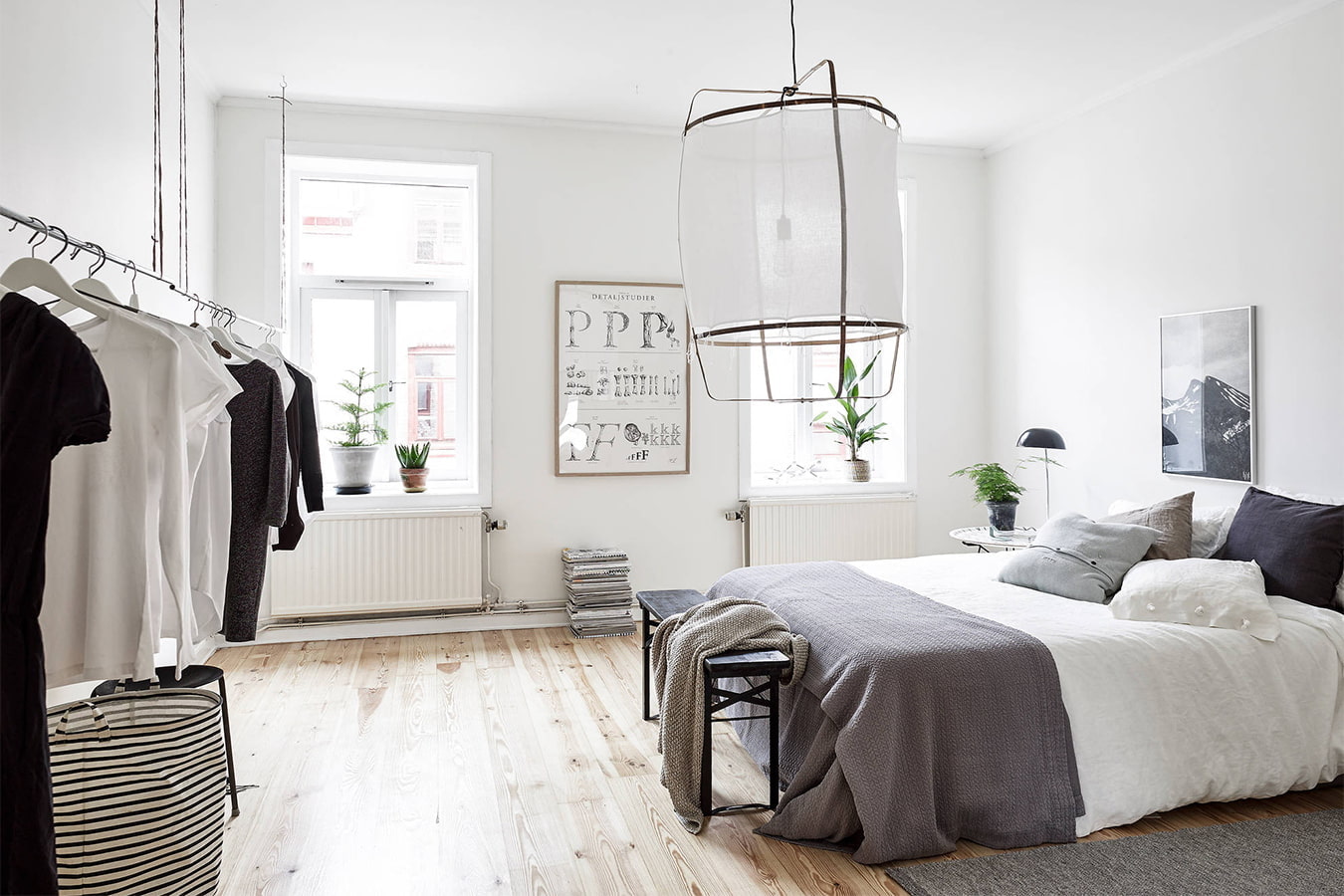 Replace bulky bedside tables with light coasters or tables along the edges, so you can maintain visual space.