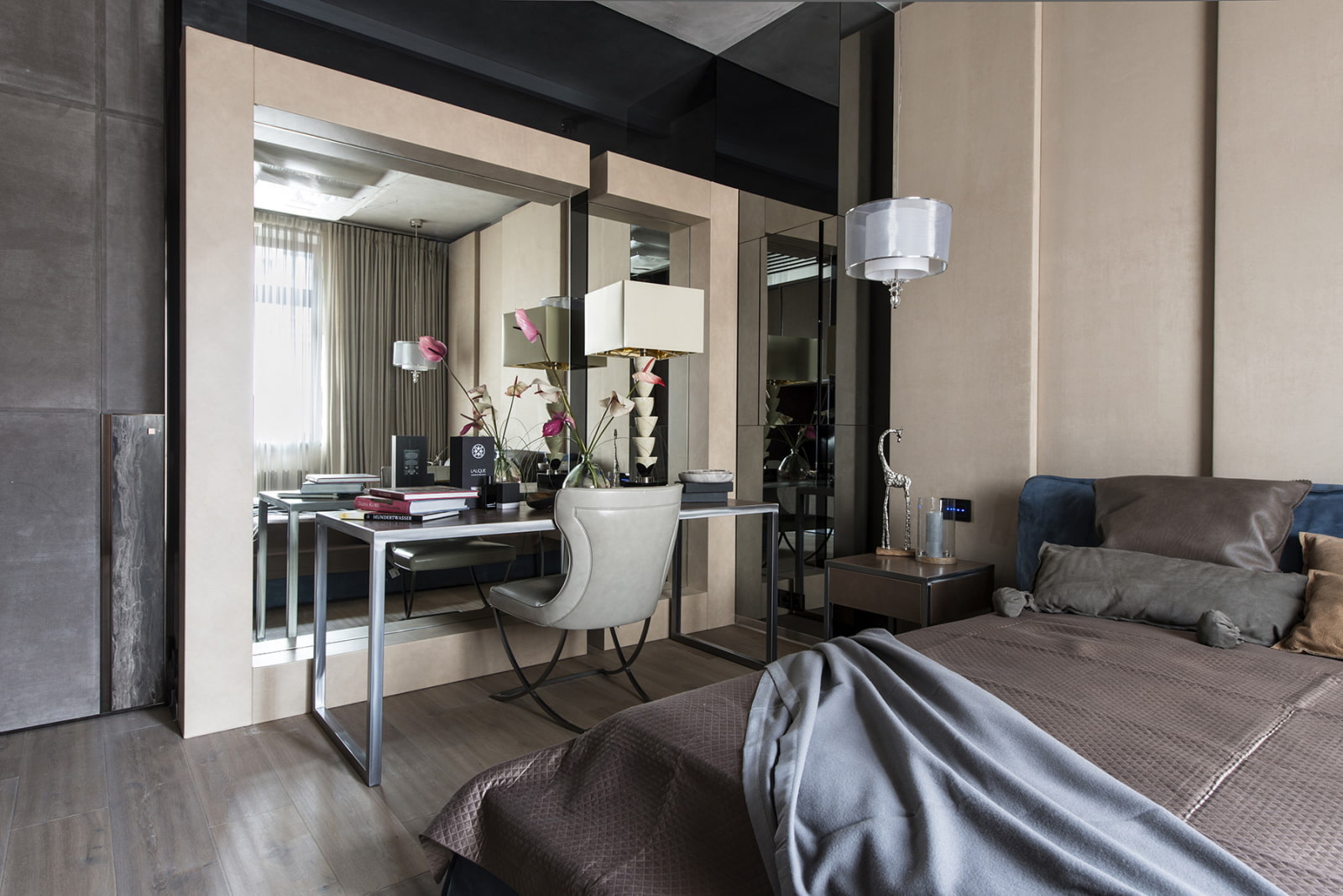 Often in the design of the bedroom, space is also allocated for the work area. Organize a table on a windowsill or place it by a window if the sun's rays won't interfere with your chores. In sunny bedrooms, it is better to place the table against the wall, with the end facing the window opening. If the table fits only light and compact, then the chair can be both classic and nondescript, and accent.