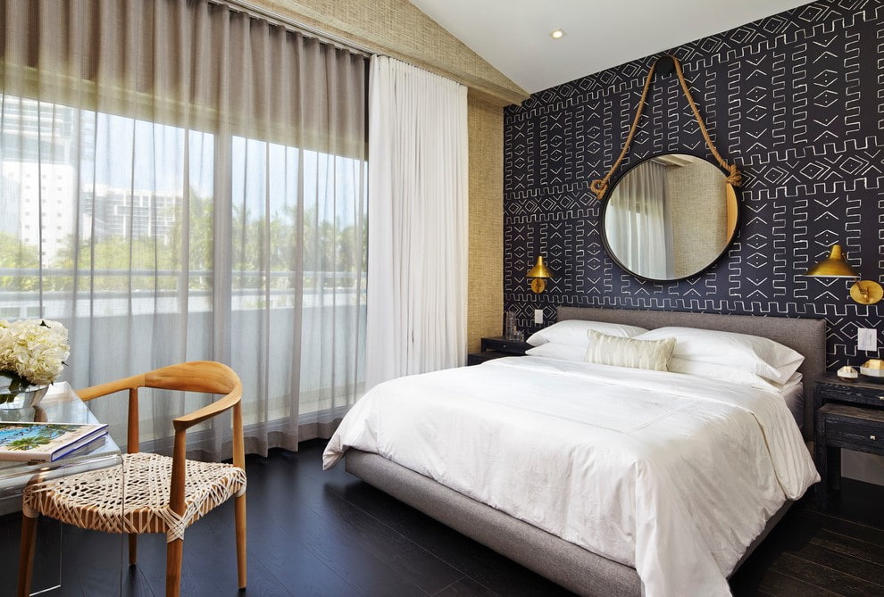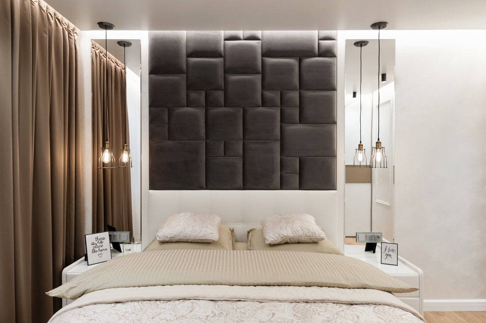 The mirror located above the bed is a fairly classic decorating technique for the bedroom, with which you can emphasize the color and thematic nuances of the interior, as well as visually adjust the proportions of the room.