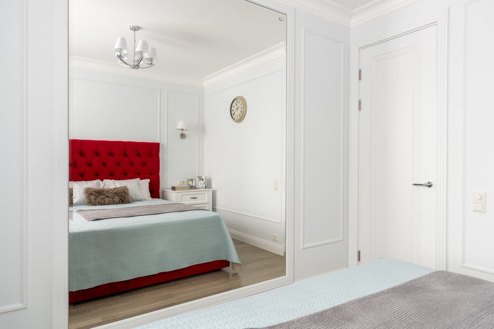 - Into the furniture. A reflective surface embedded in various pieces of furniture, such as a dressing table or a wardrobe, will create an interesting effect in the room and save space.