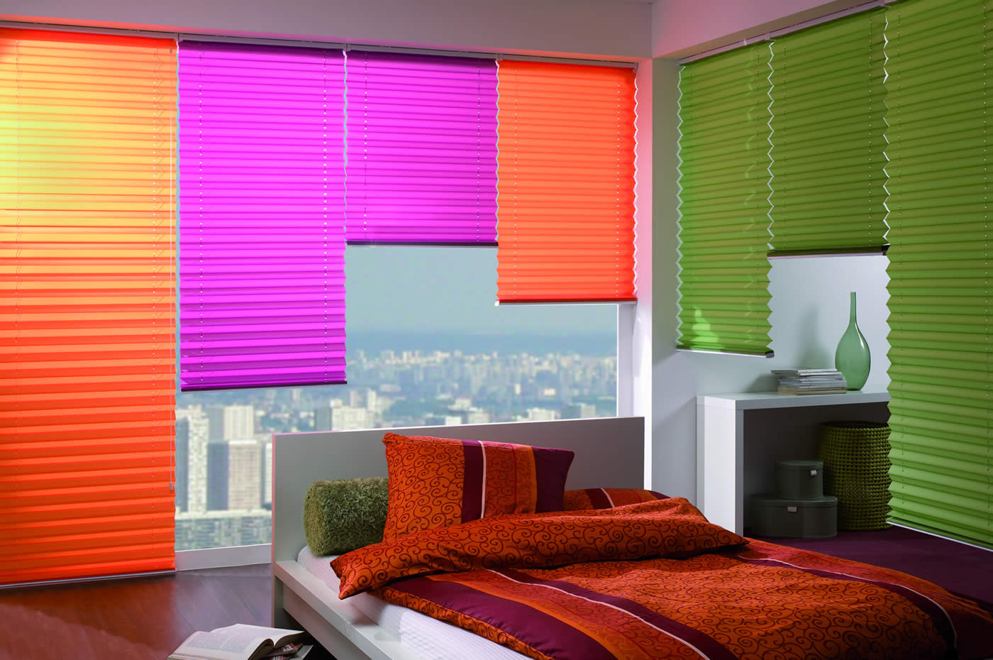 Each room has its own color scheme. Blinds in color can be in harmony with the interior or become a bright separate accent in your bedroom.