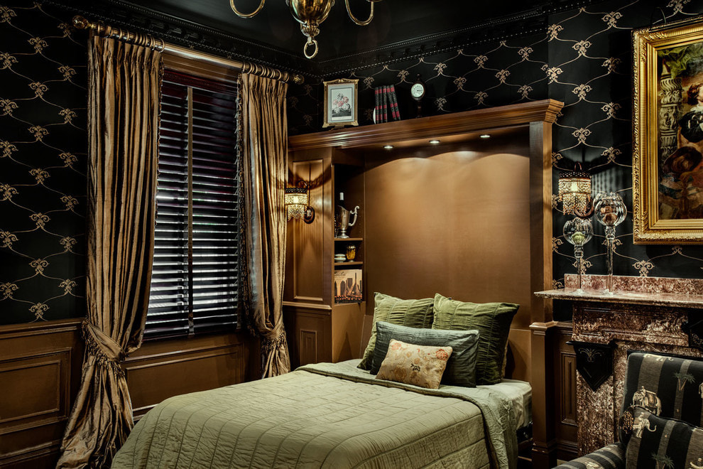 Black will look especially advantageous in a Scandinavian-style bedroom, as well as art deco or minimalism. Suitable for completely darkening a room, they have a blackout effect, creating an artificial feeling of night. They look elegant and strict on the windows.