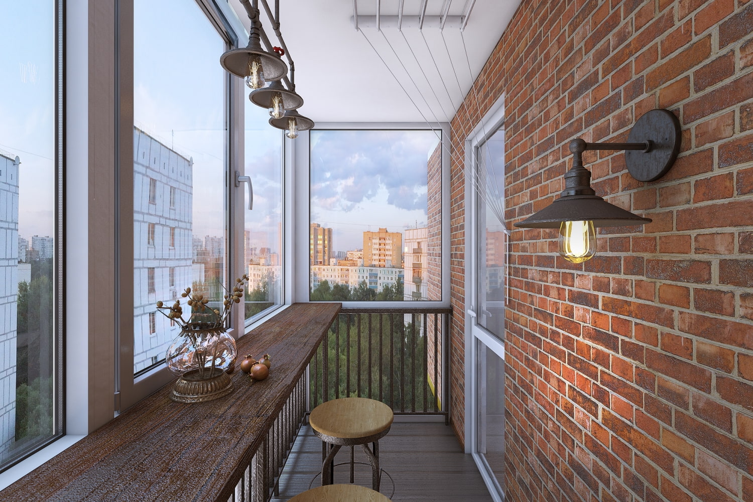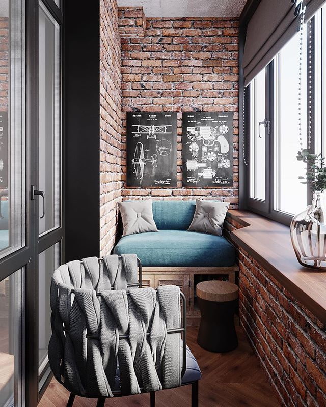 A feature of the loft is the combination of rough textures of brick, concrete, metal. When finishing in a loft style for a balcony, you can combine all these materials. Rough textures are typical for this style.