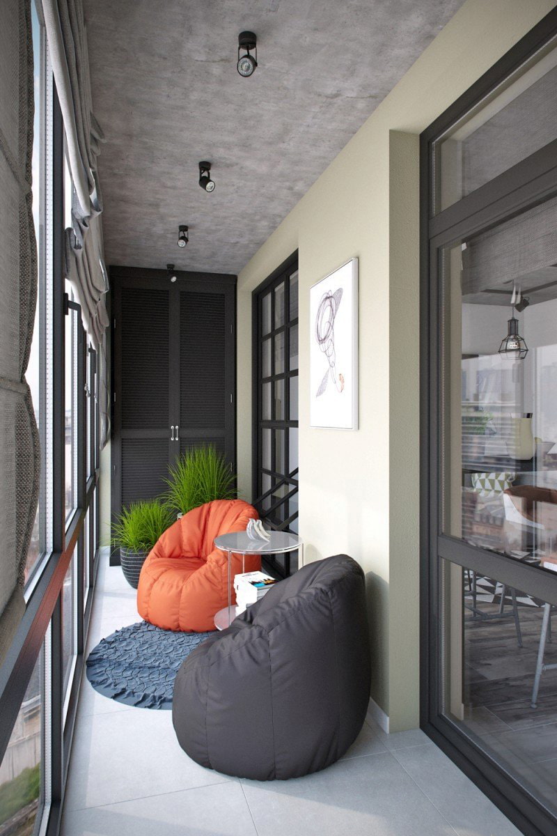 The spacious room opens up space for the implementation of bold design ideas. When decorating a narrow balcony, you should not overload the space with furniture and decor, so that the atmosphere looks freer.