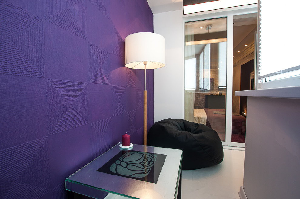 Reliable and durable material. Glass fiber has high moisture resistance, which is important for a loggia, as the surface has fire-resistant qualities. Wallpaper for painting has a different texture; in subdued light, a play of shadows is formed.