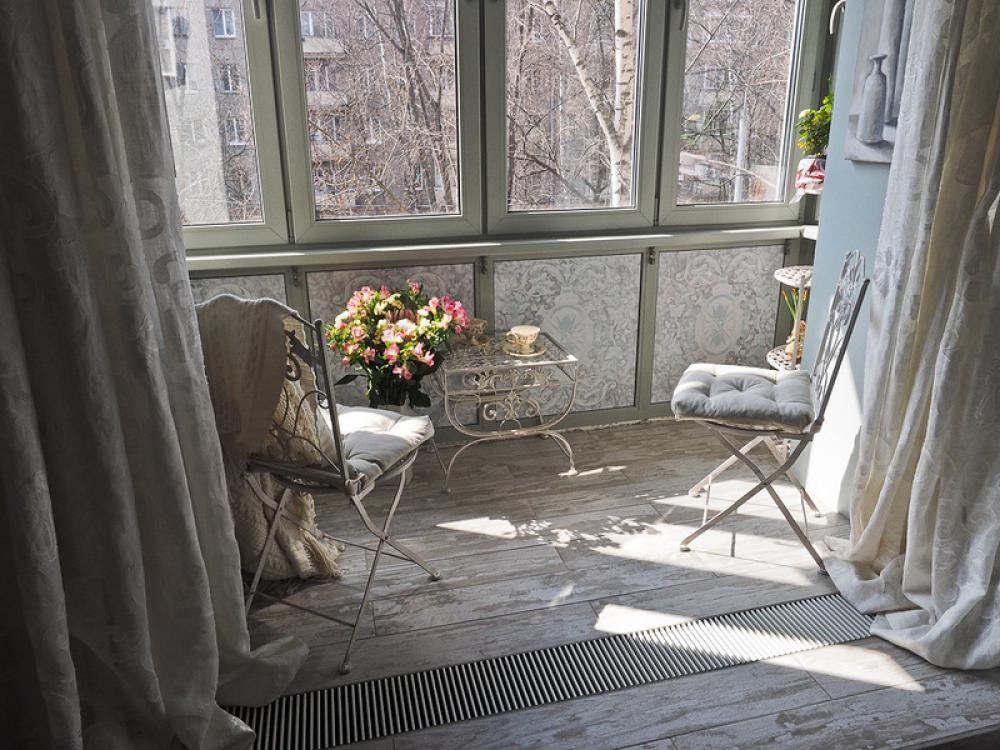 For the balcony, the same principles apply as for any other room. Light colors visually enlarge the space of a narrow balcony, dark ones, on the contrary, conceal it.