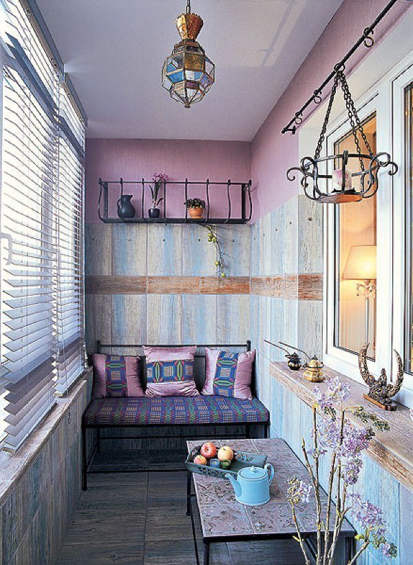 Geometric patterns help correct balcony imperfections. Vertical stripes will make a low balcony visually higher, horizontal or diagonal patterns, on the contrary, will "push apart" the walls.