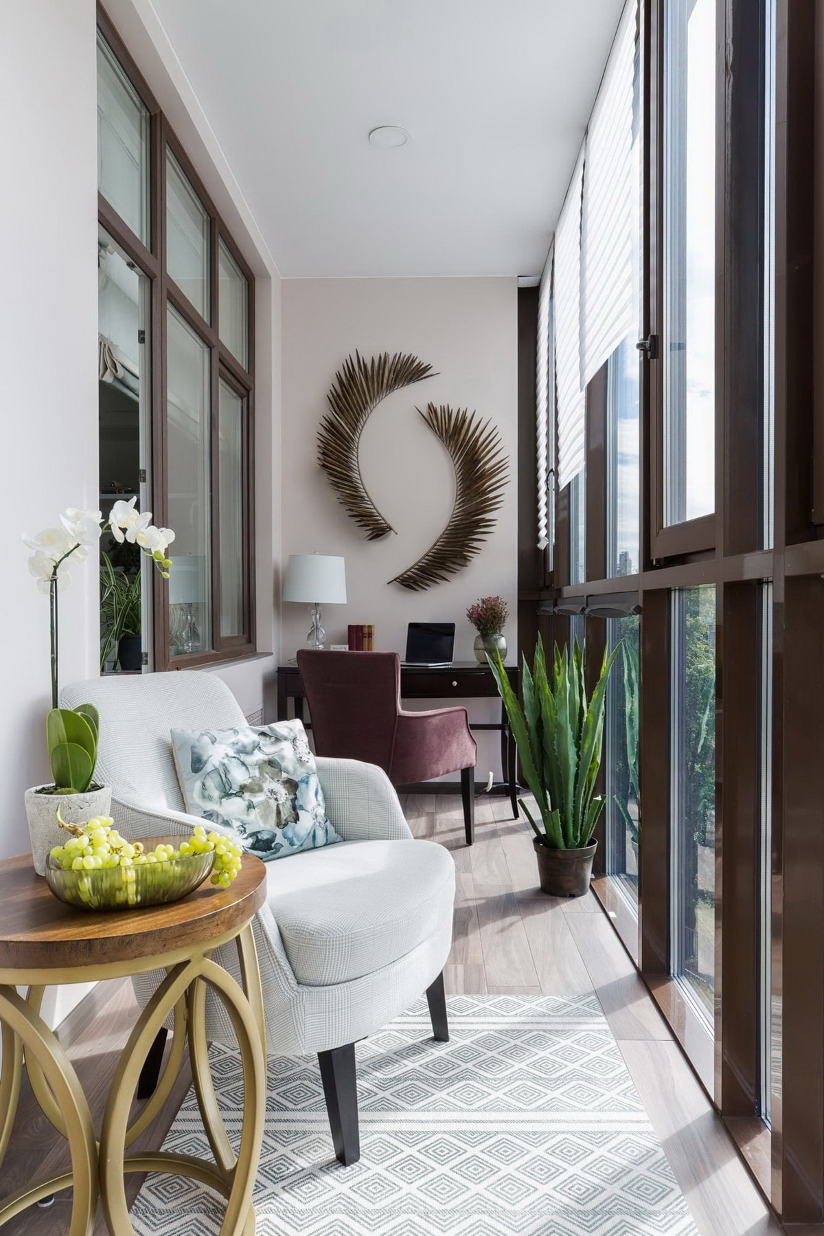 We continue the design of the balcony with panoramic glazing: now it is necessary to select the furniture. The internal filling of the loggia is based on the functional purpose of the space in the future: