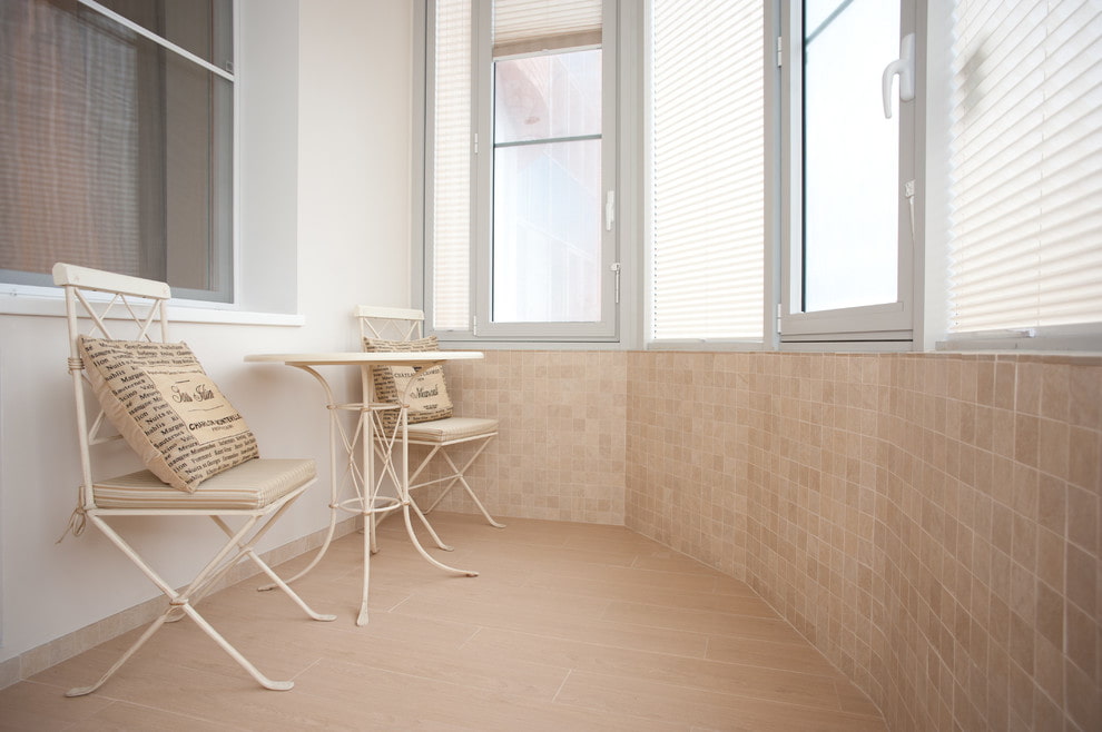 In the cladding of a closed loggia, tiles of any kind can be used, which provides unlimited design possibilities, especially if the room is insulated.