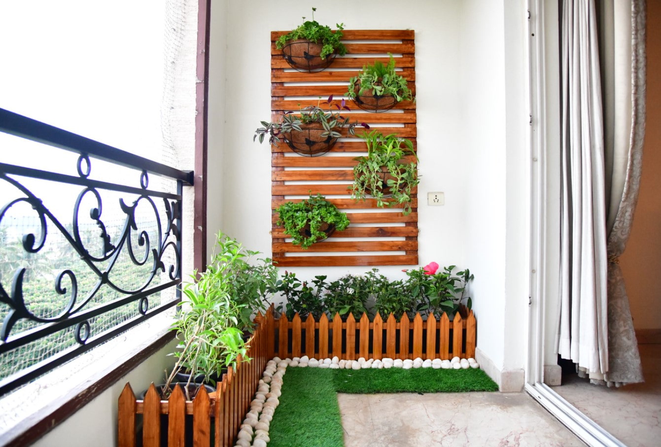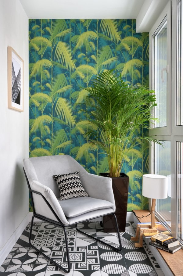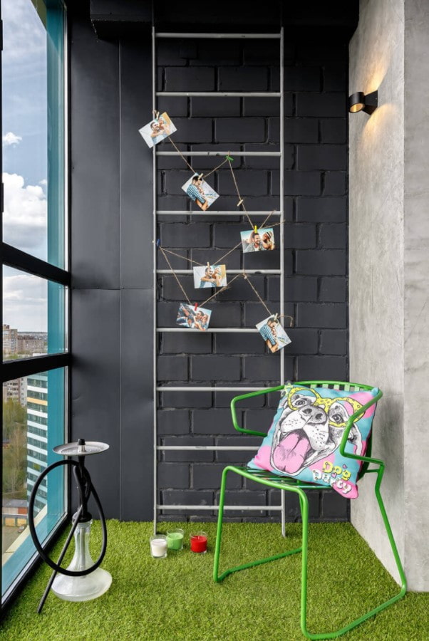 Does using sample tiles seem boring? Combine it, for example, with a lawn: artificial grass will help create a real garden on the loggia.