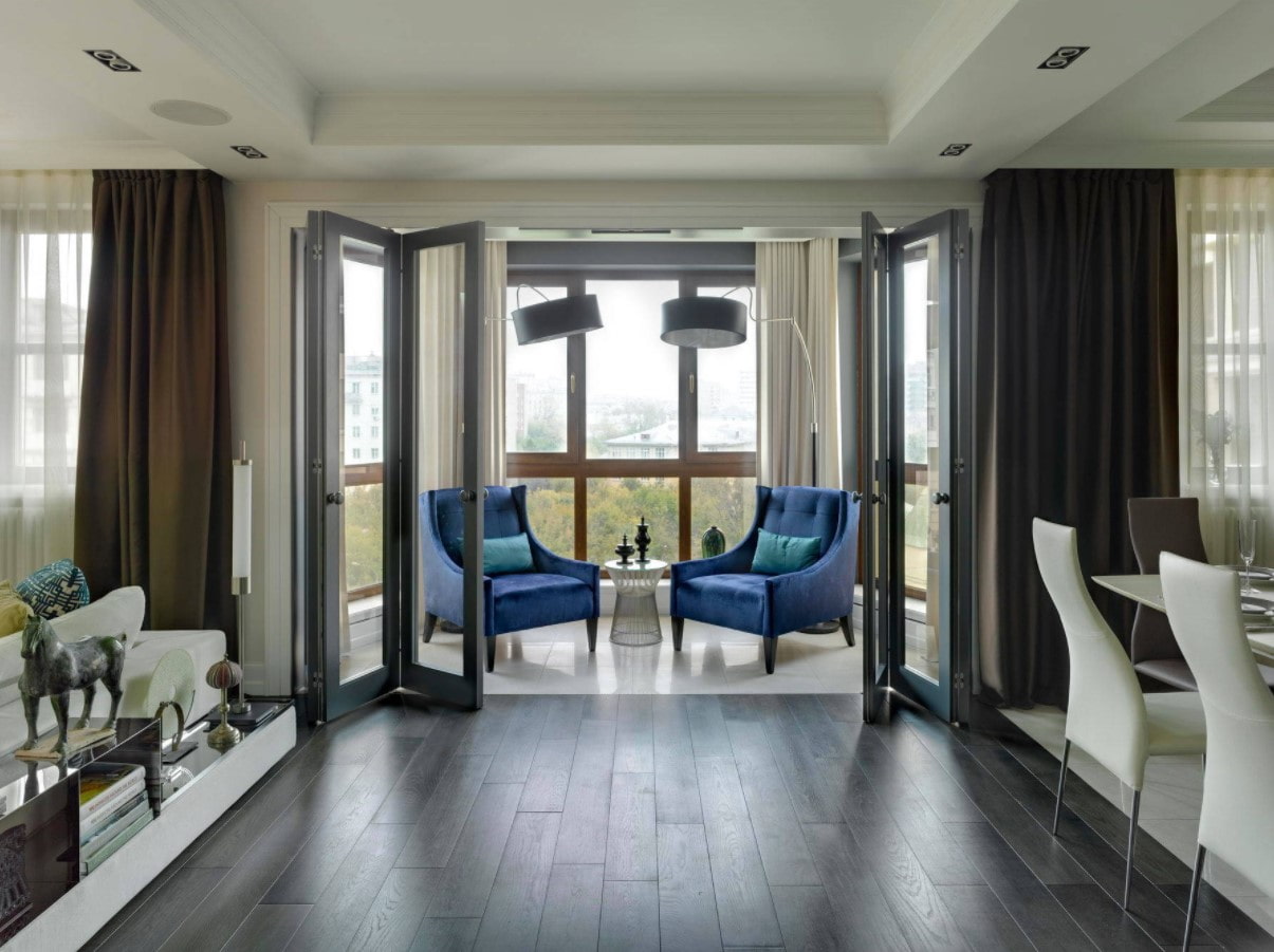 If the balcony is combined with a room, you can divide the spaces with different materials: fortunately, experts know how to make beautiful joints between tiles and laminate.
