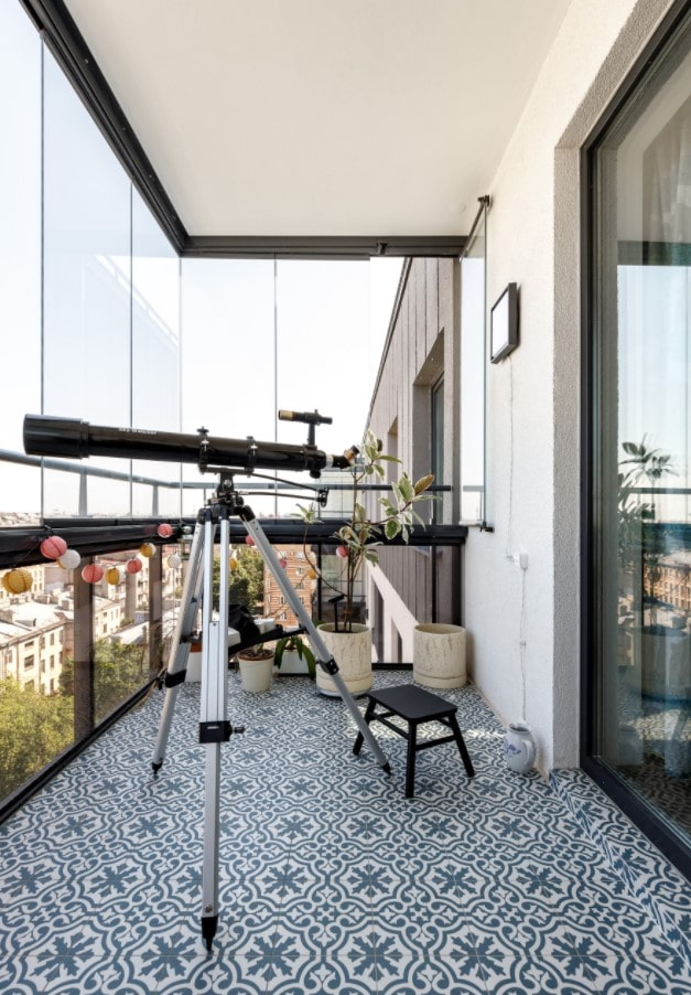 One of the most reliable floor materials on the balcony. The resistance of the tile to various kinds of influences opens up the possibility of using it as a floor covering for an open balcony.