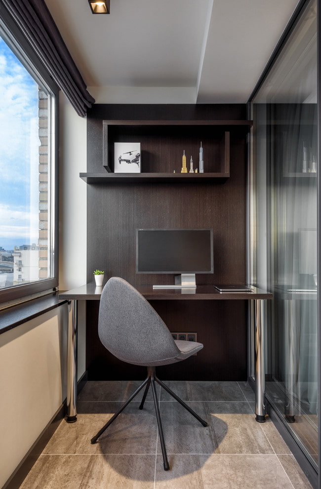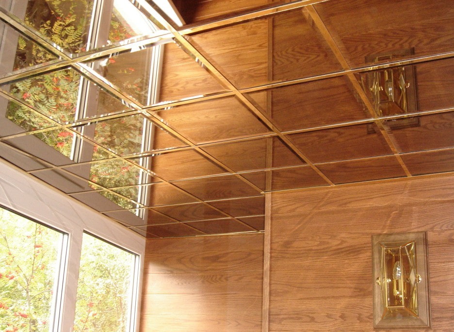It has a very organic appearance and does not visually reduce the height of the balcony. The degree of complexity of installation depends on the selected material. For example, to install mirror tiles, you need to waterproof the room in advance and mount a special frame.