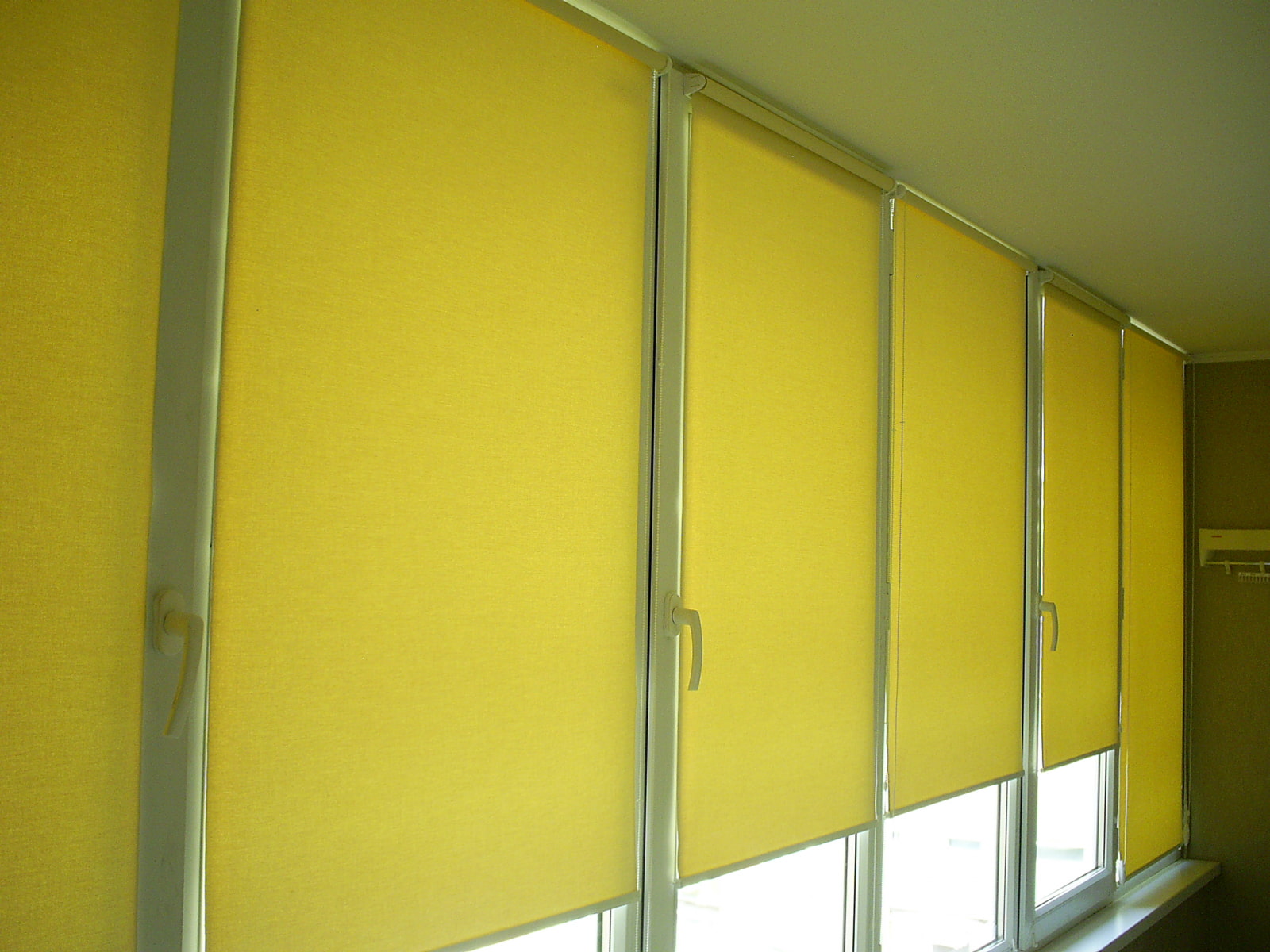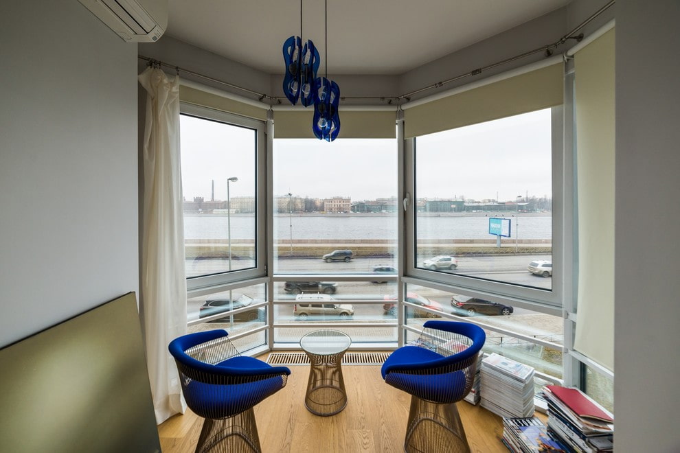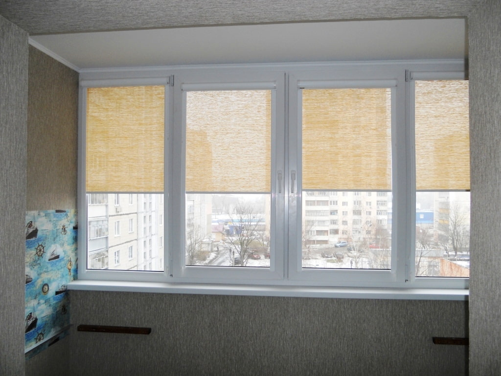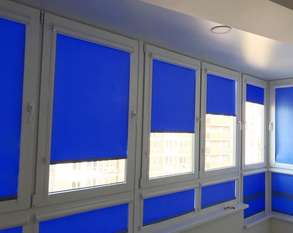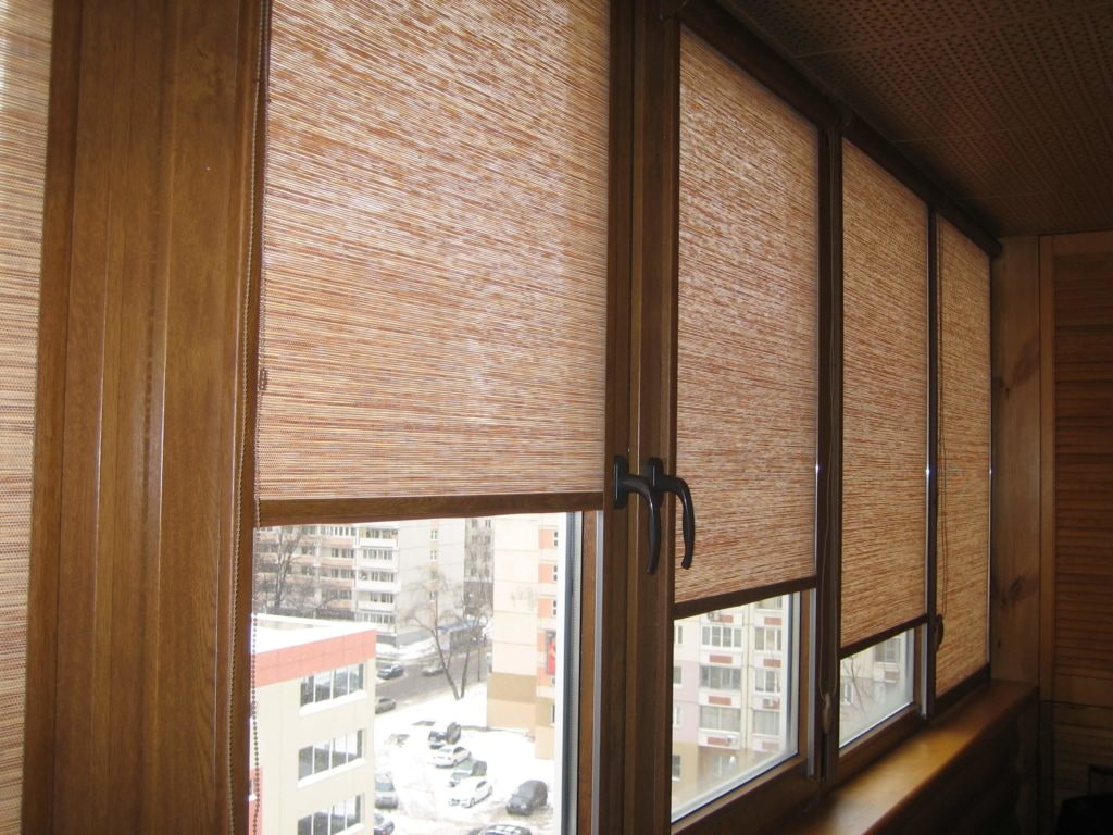 In the photo there are white roll models on a loggia with panoramic glazing.