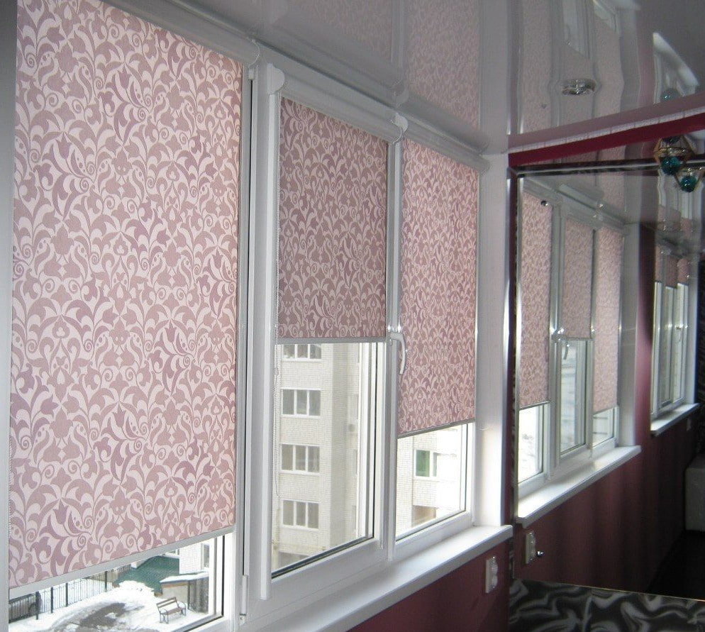 - For small balcony windows, it is better to choose rolled products with large prints and patterns, and for large ones, on the contrary, smaller patterns and ornaments are suitable.