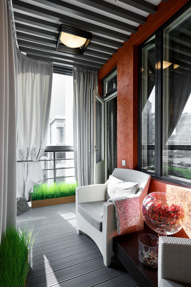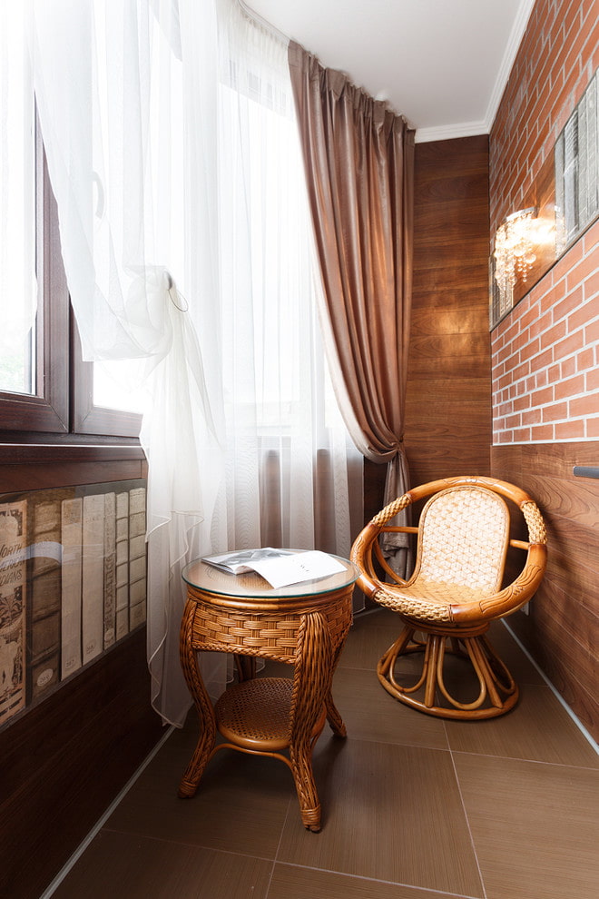 The curtains should not only be in harmony with various elements of the interior of the loggia, but also correspond to the characteristics of this room.