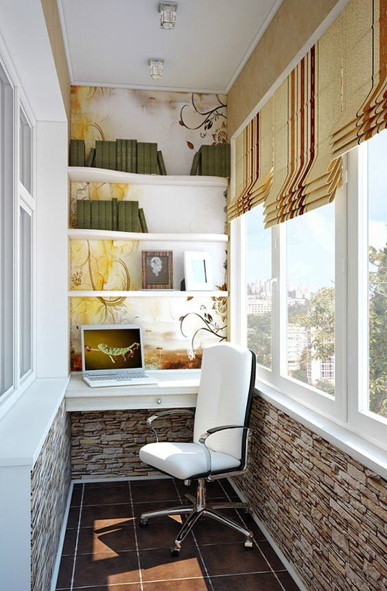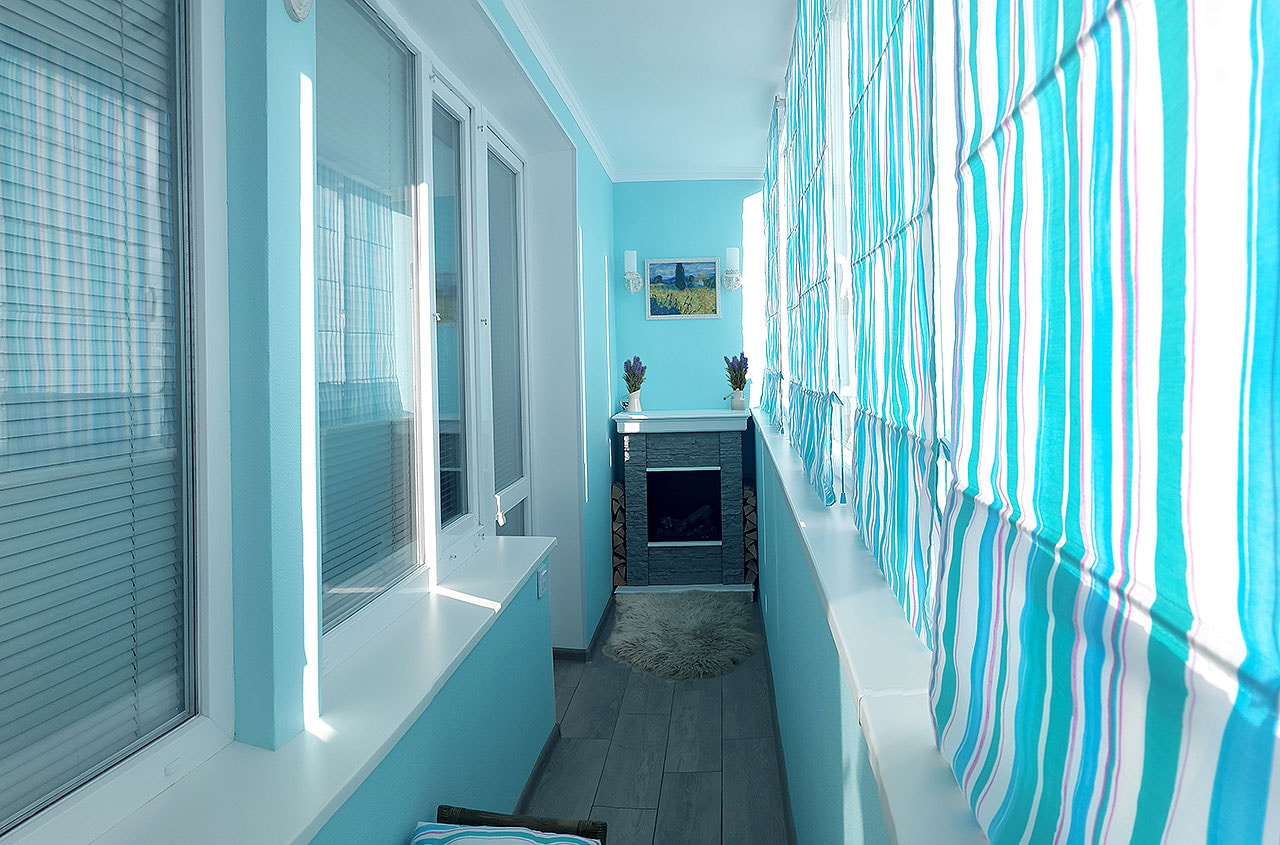 Blinds with varying degrees of light transmission, not only perfectly protect the loggia from the scorching rays of the sun, but also radically change the design of the room and give it a very stylish look.
