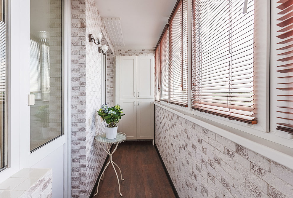 Practical and easy-to-use blinds are a neutral decorative element. Such models are especially suitable for loggias located on the south side.