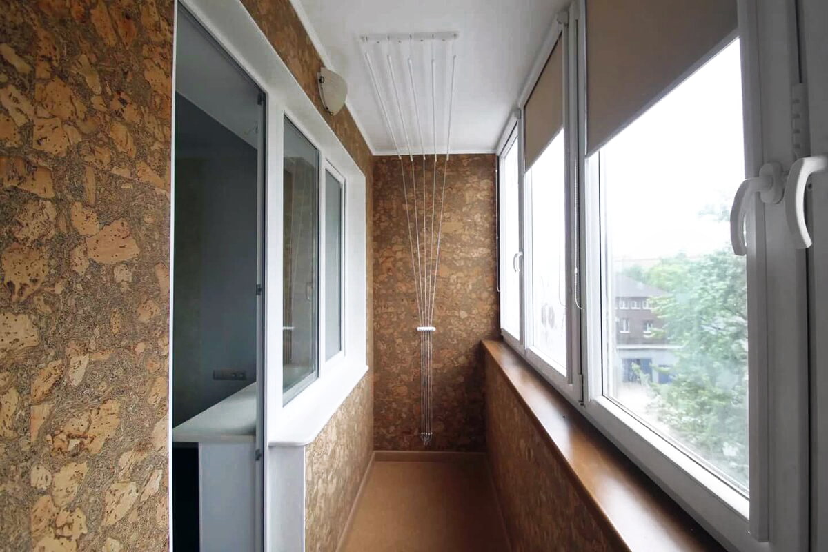 In the photo there is an insulated loggia finished in the form of cork panels.