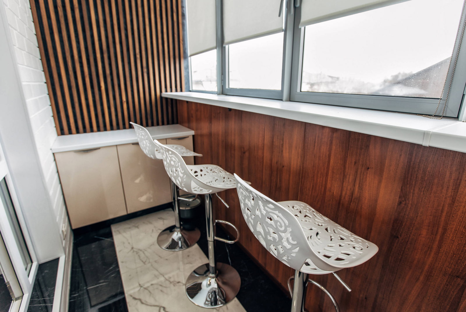 The use of several materials allows you to create a unique, and most importantly, practical design of the loggia.
