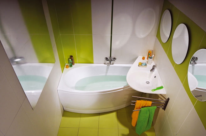 Green is a symbol of harmony, nature and kindness, its influence on a person is defined by psychologists as extremely positive. Bath in green tones will help you relax after a hard day in the evening, and in the morning it will give you a mood for decision-making and optimism.
