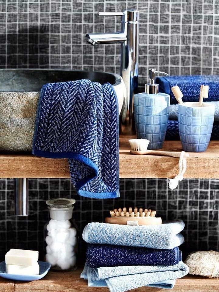 Such a utilitarian thing will easily become a decoration of the bathroom if it fits into its color scheme. Mixed textiles are the enemy of stylish interiors, so you should choose plain towels. Hanging or folded in a certain way, they can become a highlight of the bathroom.